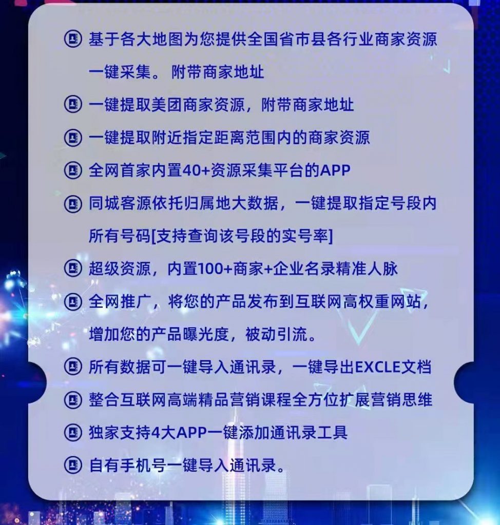 同城客源依托归属地大数据,一键提取指定号段内的所有号码。(可以查实号率)