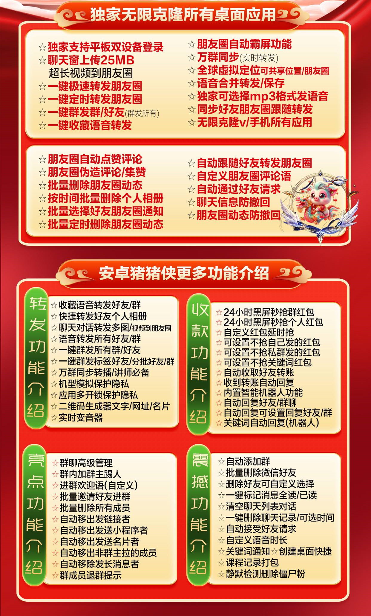 安卓猪猪侠在功能设计上,重点覆盖以下几个方面:文章源自致青春微商软件-https://www.ios85.com/3416.html
