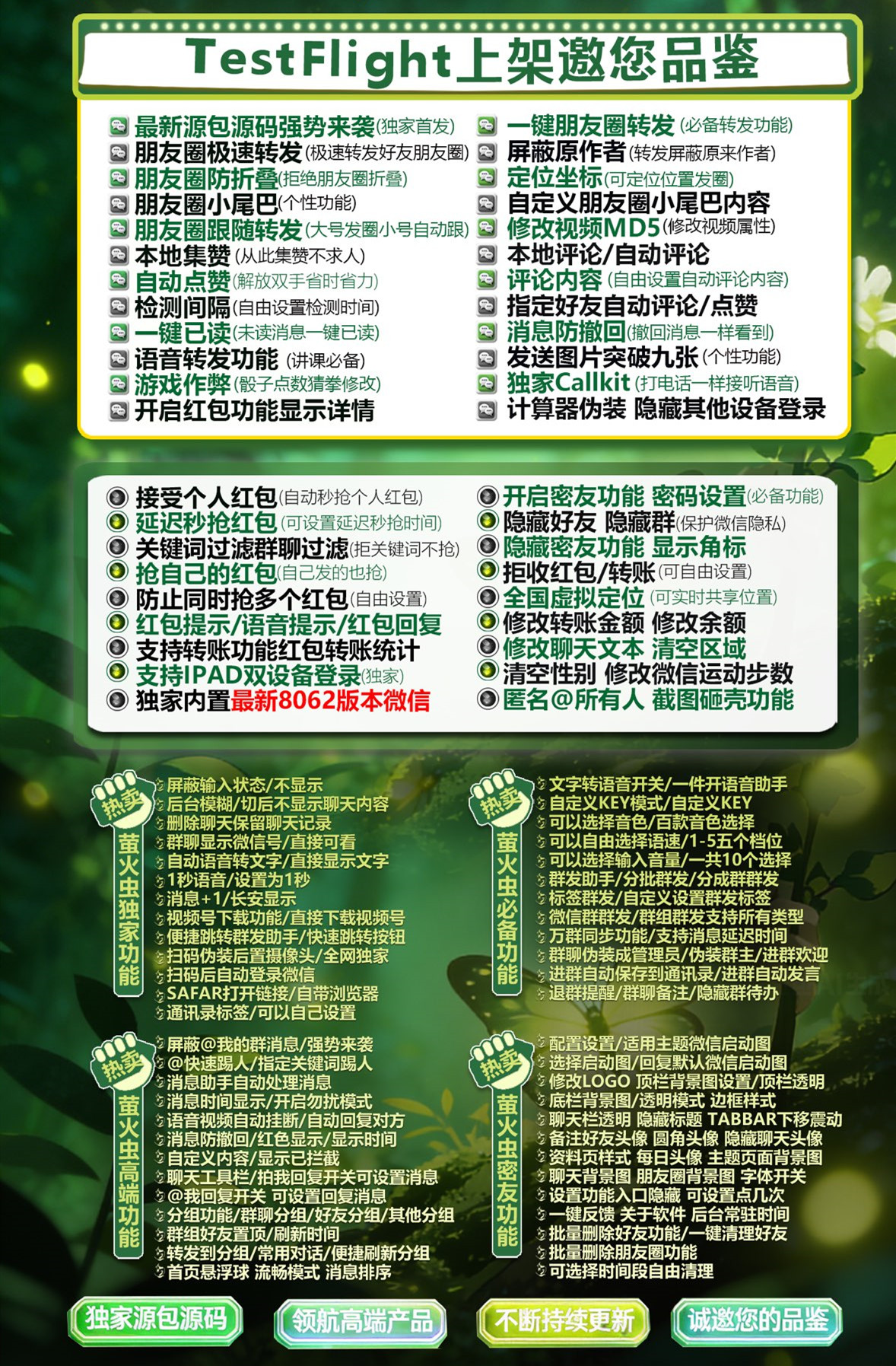 根据当前版本整理,苹果萤火虫主要功能包括:文章源自致青春微商软件-https://www.ios85.com/3443.html